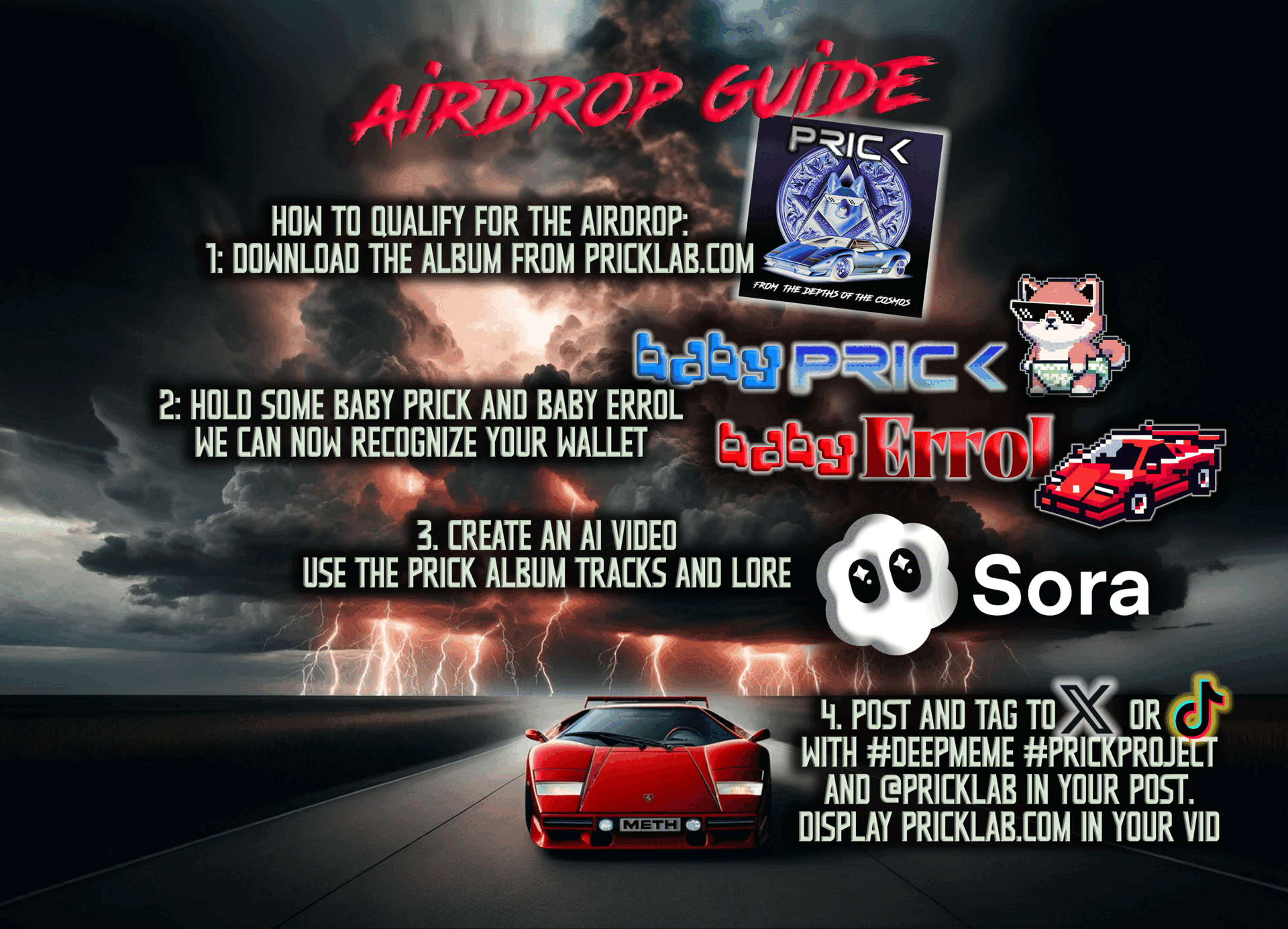 Hold Baby Prick & Baby Errol when they drop on pump.fun. create AI VIDEOS guided by all THE DEEP LORE ON THE SITE, post ON X AND TIKTOK and when the airdrop hits, your reach becomes your reward.use the METHUSELAH AMPLIFIER BLUEPRINT TO MULTIPLY YOUR REWARDS.Check the airdrop guide below FOR MORE DETAILS